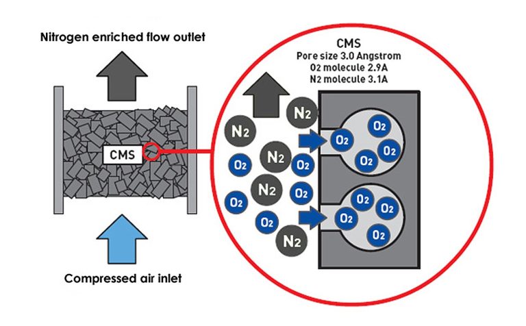 Tamices moleculares de carbono: aplicación en generadores de nitrógeno Introducción a los tamices moleculares de carbono El tamiz molecular de carbono (CMS) es un nuevo