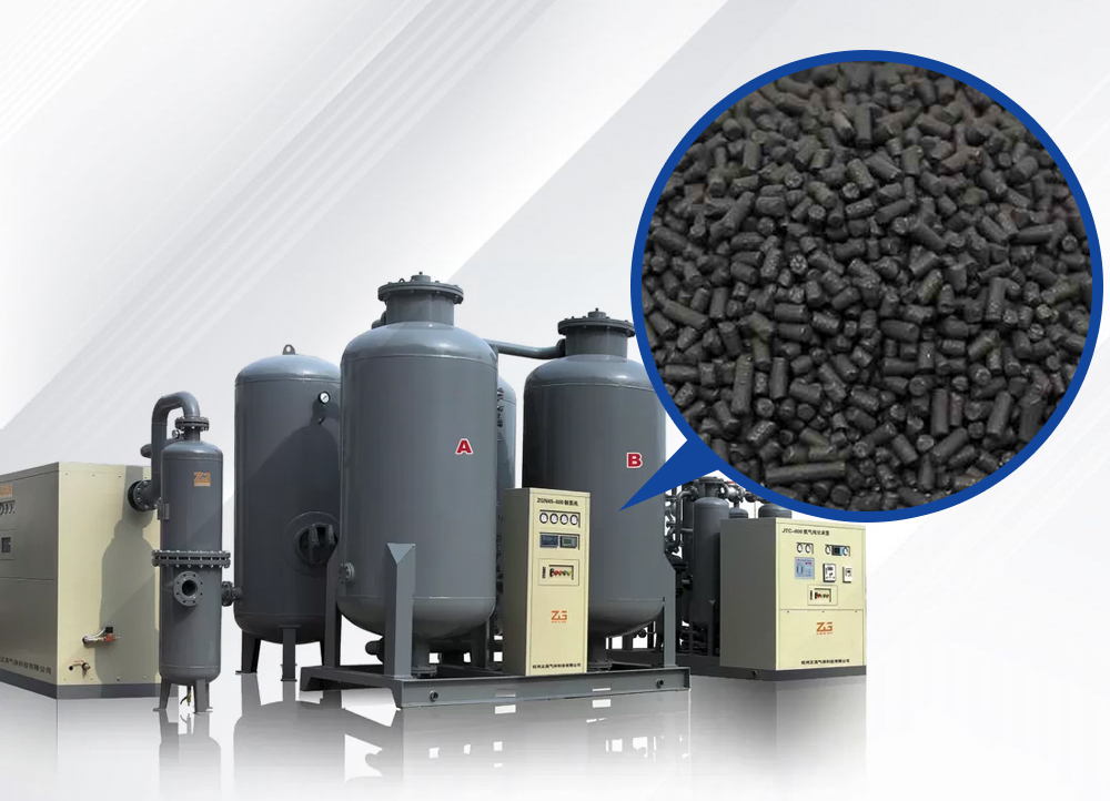 Utilizando la adsorción selectiva de nitrógeno y oxígeno en el aire mediante CMS para producir nitrógeno de alta pureza.